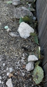 This particular one’s been fighting a protracted battle with me for a month, at least. Trying to dig into the chicken fortress at night, me stretching chain with treble-hooks wired to the links to discourage it days. Brother Coon moving to another spot, starting again. Me cutting prickly pear, putting in the holes, stacking rocks, him digging past, gradually winning me over to his own point of view that he was destined for some help getting into the next lifetime.
