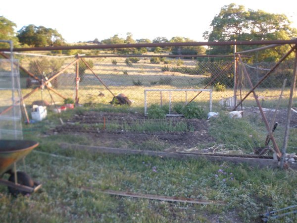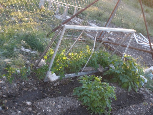 I lacked a couple of feet having enough chain link so I made up the difference with the refrigerator shelves wired together you see beside the gate.