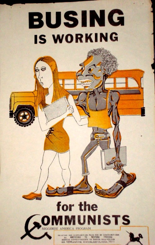 A word in advance:  About the time Merle Haggard was reaching the top of the charts with “The Fighting Side of Me”, and “Okie From Muskogee” a war over forced busing was being fought in cities all across the country by good Americans.  The poster you see appeared on telephone posts, taped to the outside of doors, windows of public places, scattered on the streets.