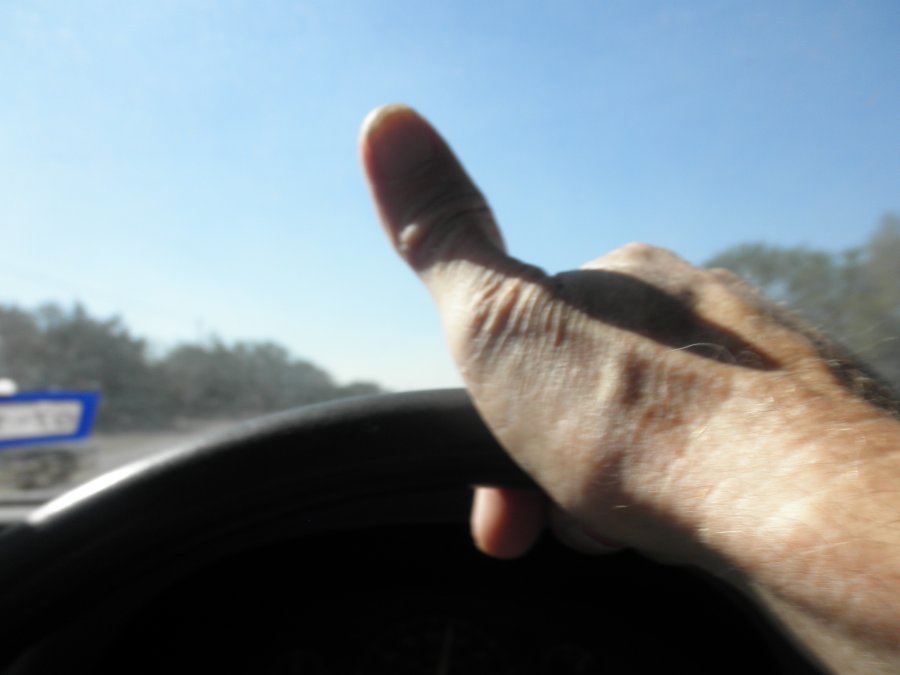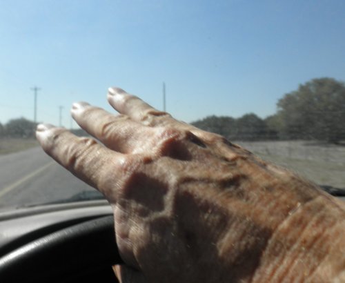 That’s right. Greeting oncoming motorists in rural Texas is important business. You never risk the full finger howdy unless you know the guy you’re giving it to well enough to anticipate exactly what he’s up to.