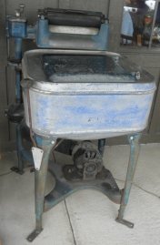 But yesterday in town I saw this and it stopped me in my tracks. “Wow!” thinks I. “That thing could wash a lot of clothes at once, and it has a wringer.”