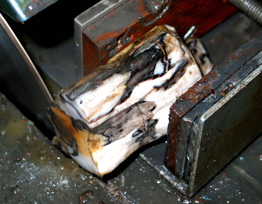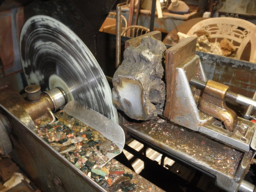 Meanwhile he’s keeping three saws working up there slabbing the jewelry quality stone he picked up at the San Antonio Rock and Mineral Show, hmm or maybe it was Austin, a few days back.