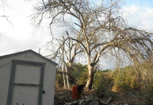 There’s no wind today and I think if it weren’t for that piece of plastic I’d have both of those down and cut to firewood lengths by mid afternoon. I’m going to pick up a spare when I get a replacement. That saw’s got a lot of miles on it and it’s been a good one, but maybe it will figure it can’t die final-like until it wears out that extra primer plunger bulb. Cheap insurance.