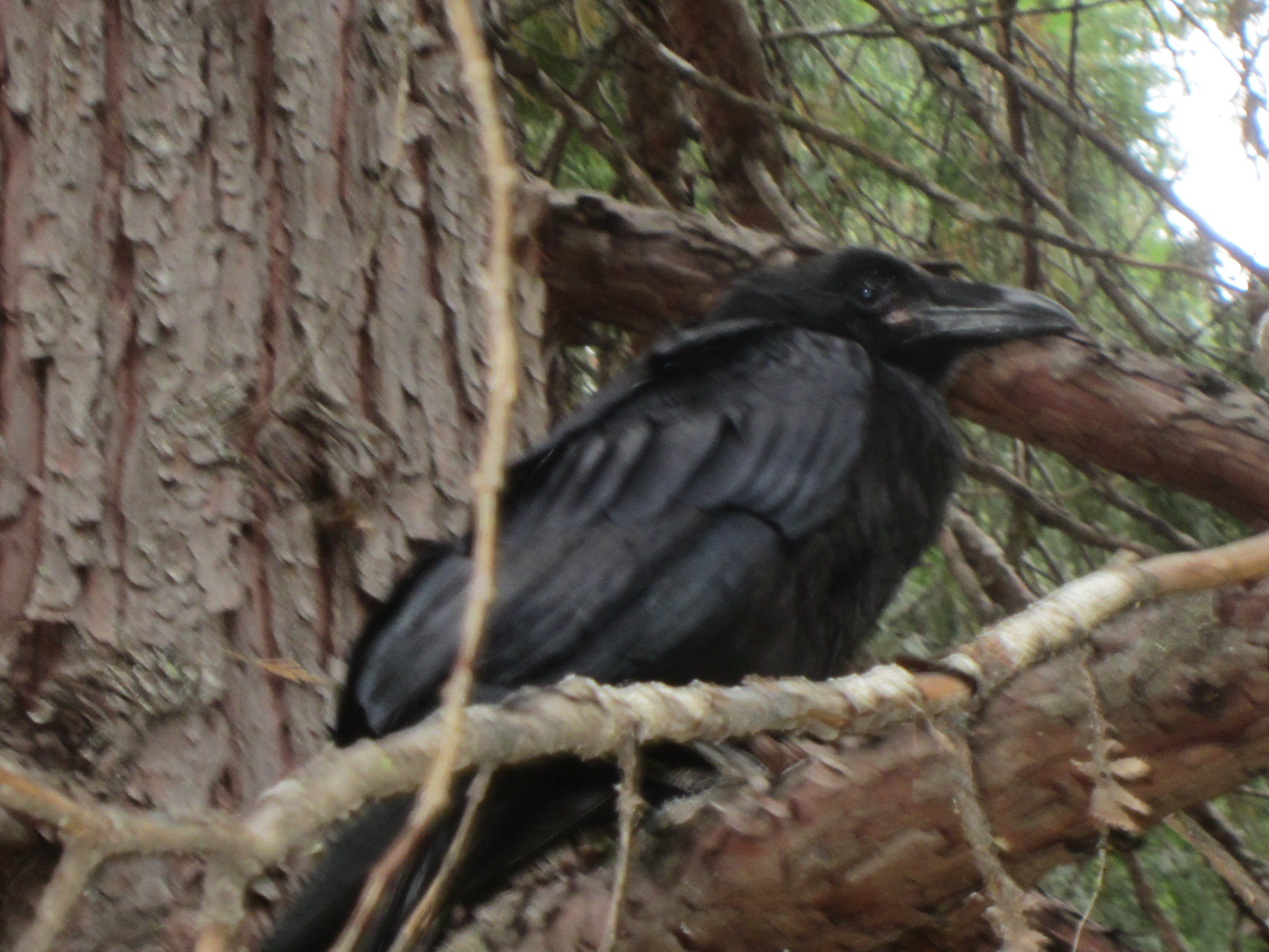 One morning at Breitenbush, while I was sitting on a bench reading Girl in Reverse by Barbara Stuber and waiting for the lunch gong, this raven came walking up the sidewalk, much to everyone’s amusement.