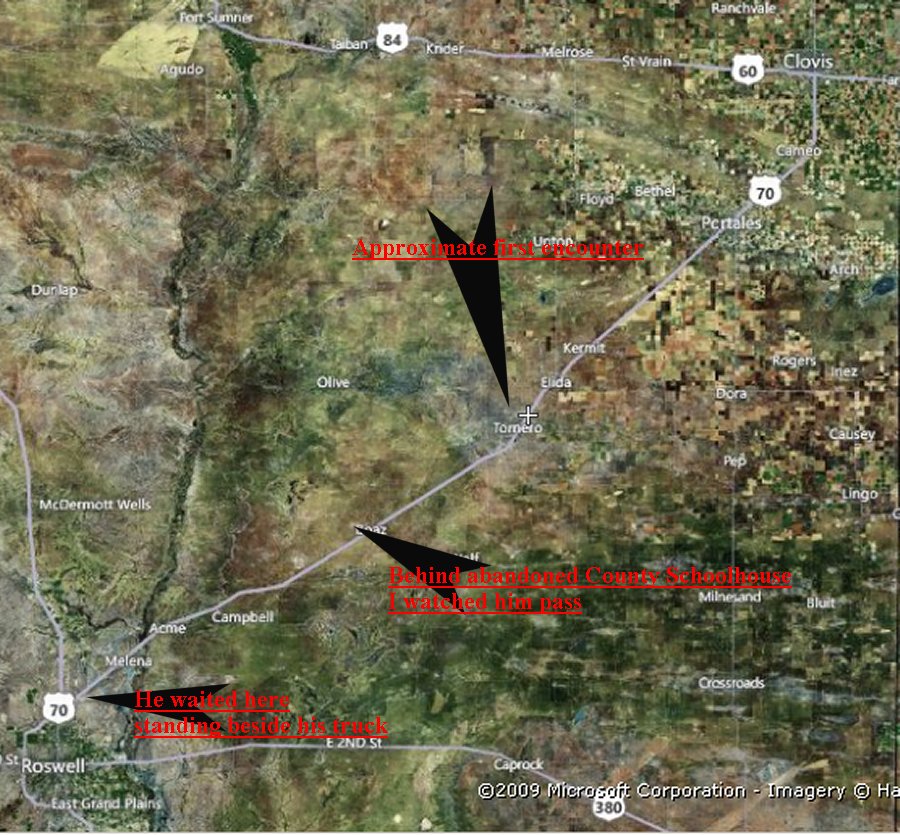 I drove on, taking my time now. But when I arrived at the intersection north of Roswell where traffic goes north toward Santa Fe, south into Roswell, or west into the mountains, there he was, pulled off and waiting. He somehow knew, I suddenly realized, I’d gotten behind him. So instead of going on I drove into Roswell and got some lunch, figuring he’d be out of my life by the time I headed west.