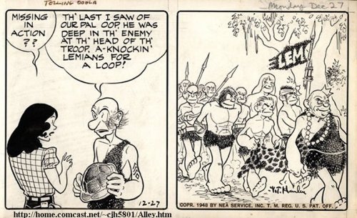 My first step-dad [Arizona] was fond of reading the Alley Oop comic strip to me and I was a huge fan.  Alley was a cave man skipping forward and backward in time thanks to a 20th Century scientist.  Alley even had a 20th Century lady friend named Oola.