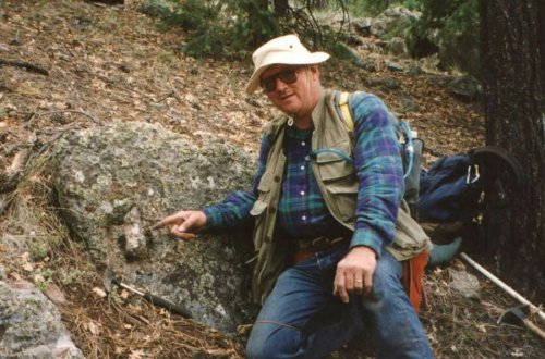 One day I was climbing around up there with my lady friend of the time, Jan. Following the guy around, trying to figure out what the hell he was doing and why. We came to a rock face with a quartz outcropping he’d been working, but stopped, obviously half-done. Not like him at all.